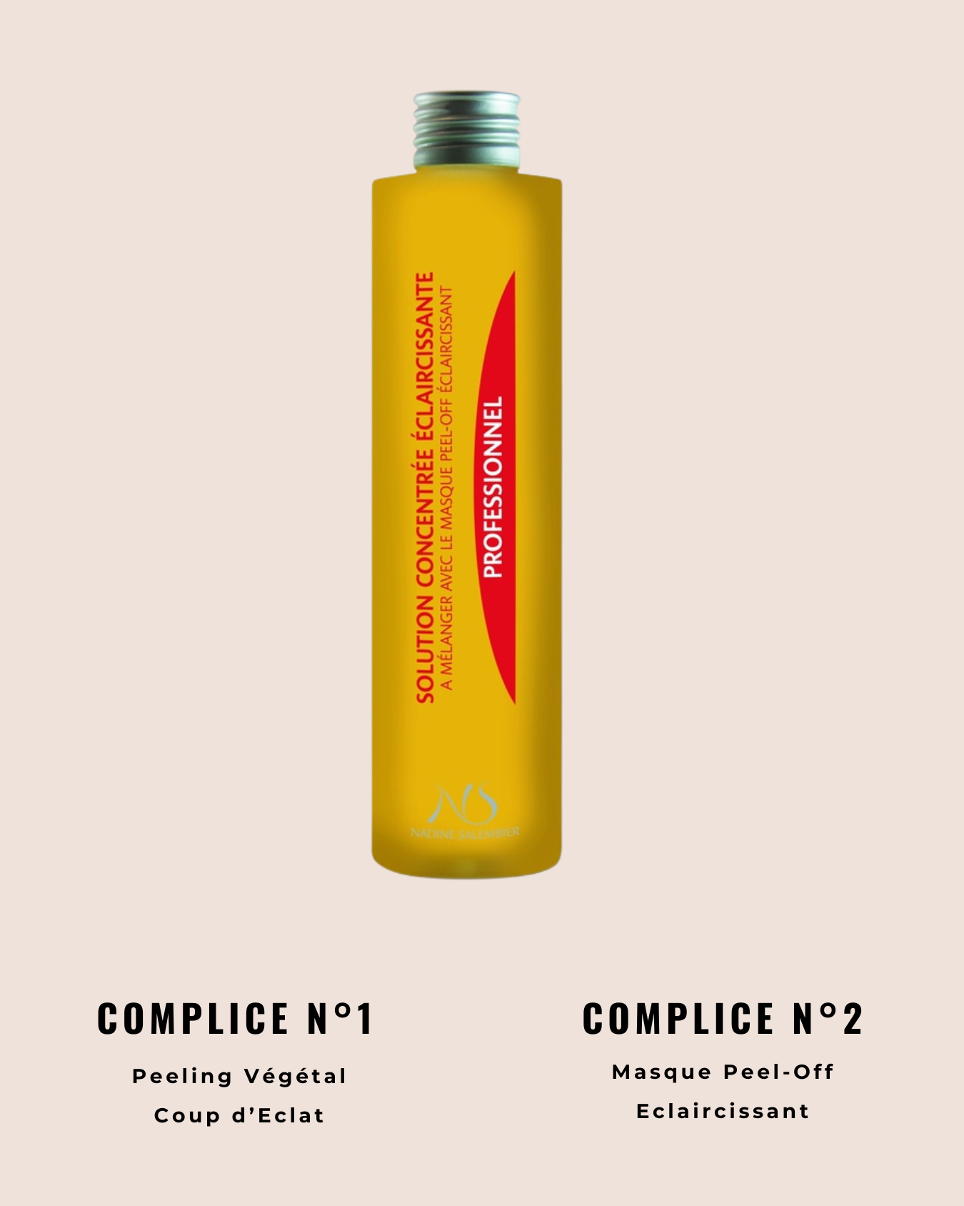 De Lightening Concentrated Solution kan gebruikt worden als activator voor het Lightening Peel-Off Mask of de Radiance Boosting Plant-Based Facial Peel.